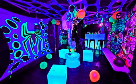 2 pieds comprenant chacun 2 projecteurs à lumières noires UV, idéal pour une soirée fluo dans une salle des fêtes de taille standard, moyenne à grande